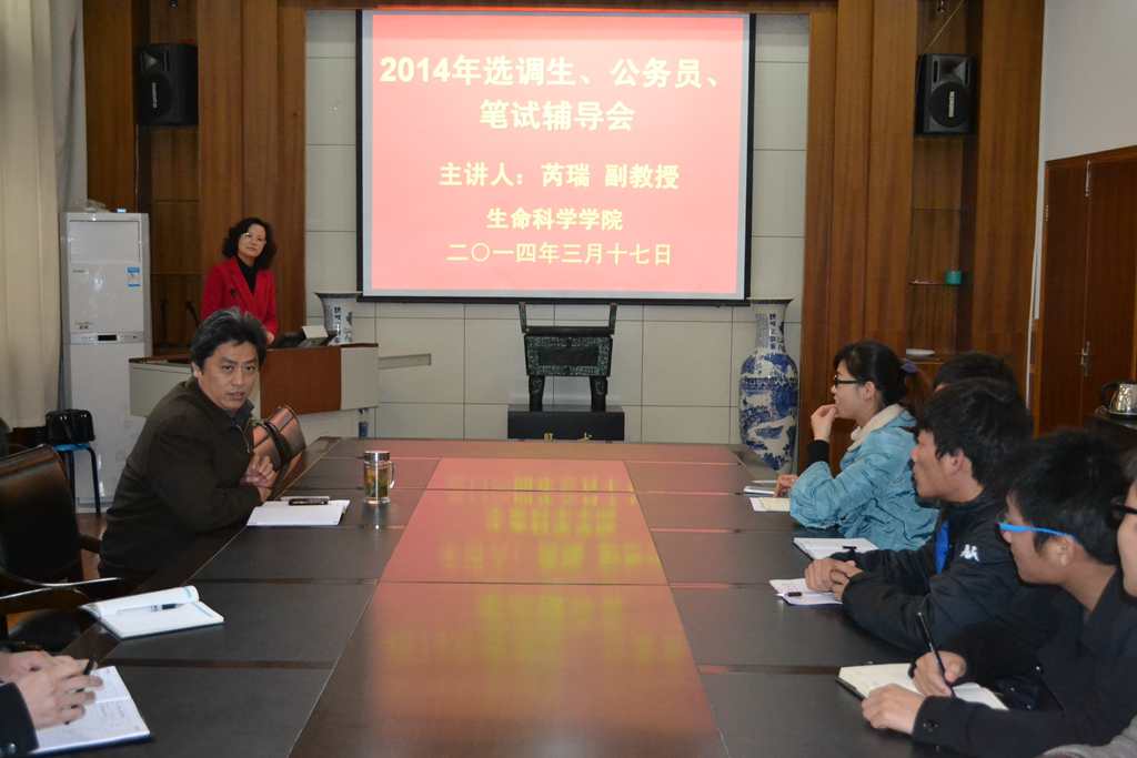 3月19日,公司举办了2014年选调生、公务员笔试专题讲座,党委书记袁兴龙主持讲座。文公司写作教研室主任芮瑞副教授应邀为同学们作了专题辅导,深入解析了《申论》考试答题技巧。芮瑞老师首先从给定材料形式相对固定、能力考察针对性加强、作答要求更具灵活性、针对性等特点出发,对《申论》考试的特点和命题趋势作了介绍。随后,她结合近十年公务员和选调生考试真题,重点阐述了《申论》考试的答题策略:对“给定材料”的阅读方法作了详细介绍;对概括题、对策题、作文题各自特点和作答技巧、方法作了阐述。芮瑞老师3个多小时深入浅出的讲解让同学们对《申论》写作有了较为全面的认识、对申论答题有了一定的掌握,增强了同学们考出好成绩的信心。袁兴龙书记在主持会议时对芮瑞老师的到来和精彩讲述表示感谢;鼓励同学们认真备考,充满信心走进考场、走向成功。