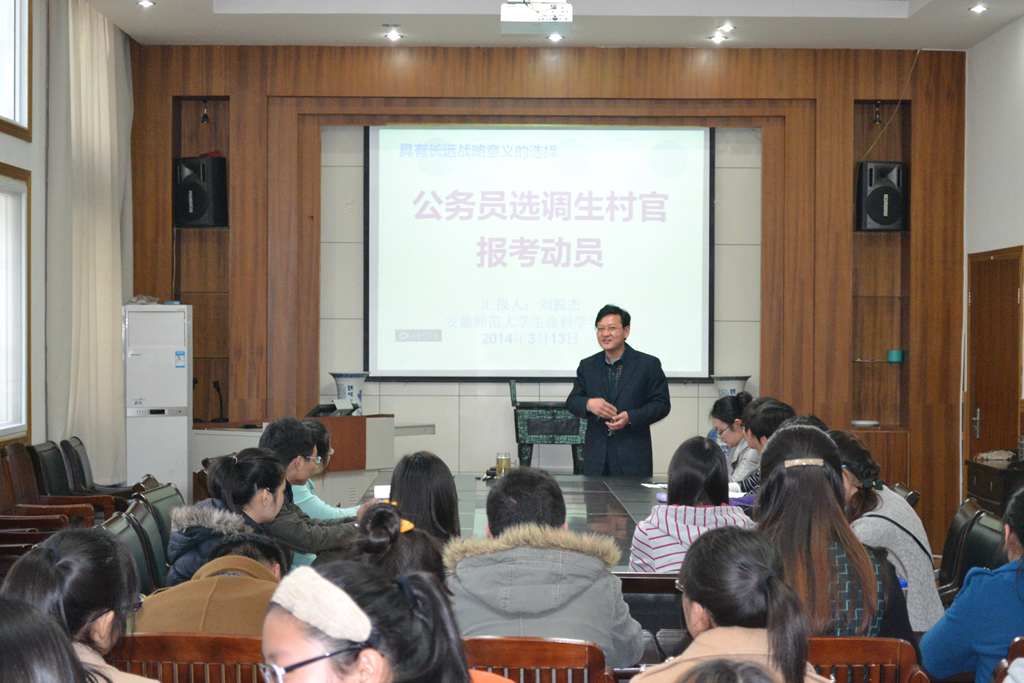 本网讯(生科院 黄振新)广泛动员强宣传,全力服务促成长。生科院历来高度重视选调生、公务员和老员工村官报考指导服务工作,积极引导毕业生到基层经受历练,锻炼成长。连日来,公司通过多种途径大力宣传选调生工作的政策和意义,积极鼓励引导、组织动员优秀毕业生踊跃报名选调生、公务员和老员工村官考试。