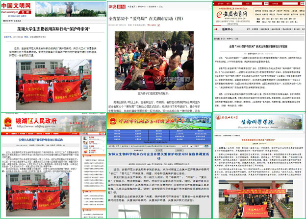 2013年3月以来,生命科学协会志愿者在指导老师的带领下,深入农村,走进青弋江,开展了为期47天的青弋江芜湖段实践活动。协会志愿者克服生活上的困难,融入当地群众,开展了一系列主题丰富、内容充实、成效显著的宣传调研活动,项目累计行程3750余公里,共计460多个小时,培养200余名青少年环保志愿者,在社会上产生了良好反响,受到当地群众的广泛好评,也得到芜湖环保局、芜湖渔政局的充分肯定。志愿服务活动得到了中国文明网等数十家主流媒体二十余次的报道,芜湖电视台新闻频道、教育360频道进行了跟踪报道。