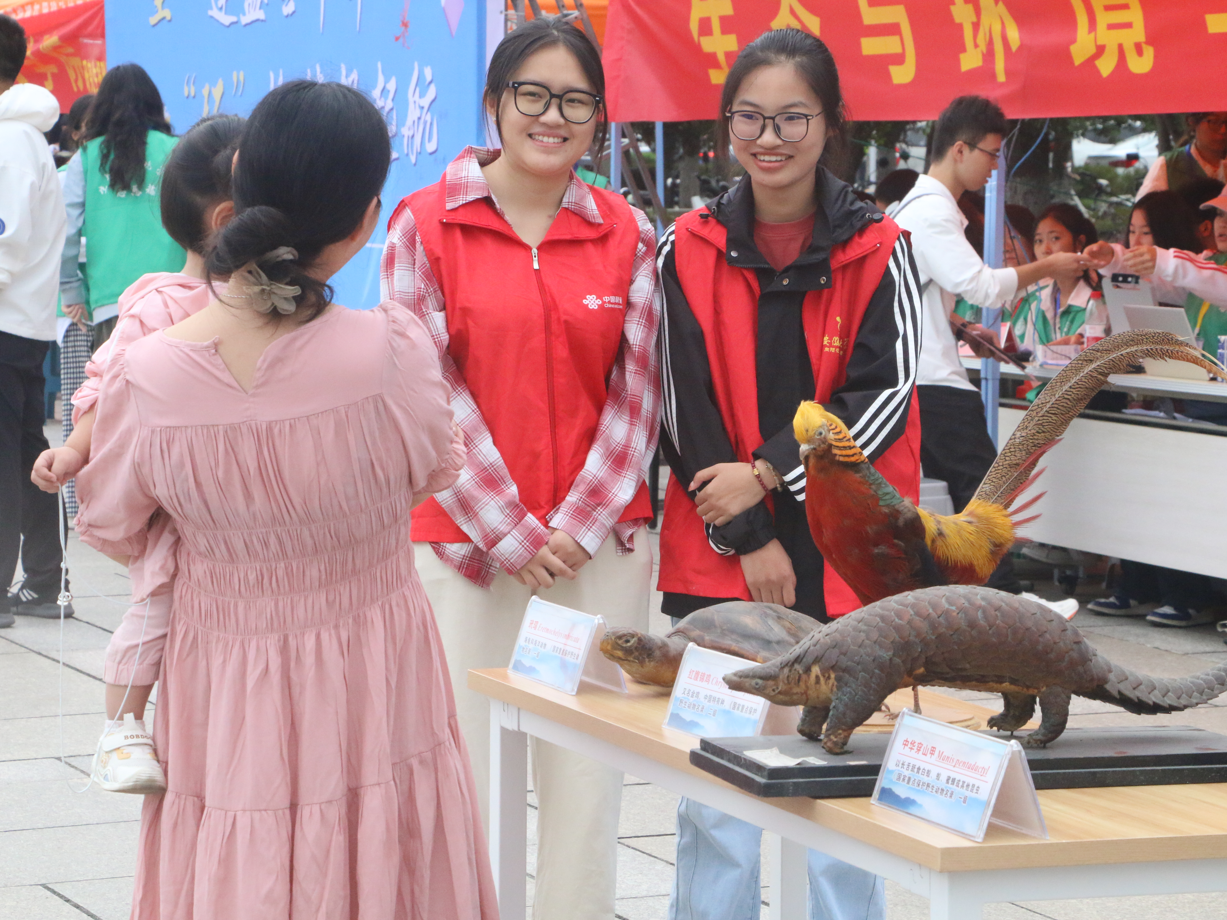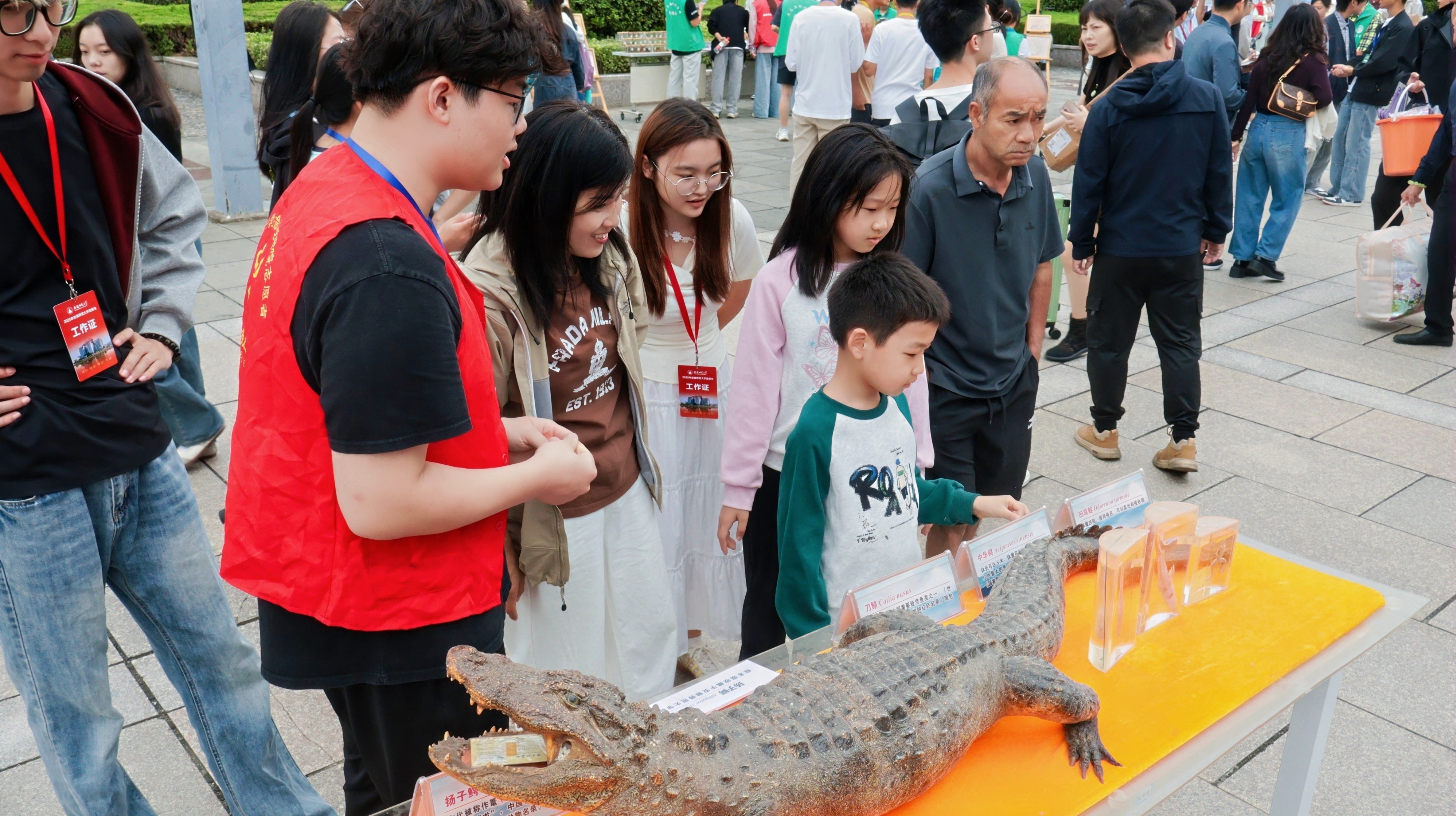 创意展区,专业启蒙“新起点”。公司在迎新报到现场专门设置生物标本展示区,从公司标本馆七万余件馆藏中精选出代表性标本进行展出,其中包括扬子鳄、穿山甲等一批国家保护动物标本,吸引了众多新生及家长驻足观看。科普讲解志愿者们向新生详细介绍标本的科学背景与学科价值,讲解标本馆的建设历程及其在科研与教学中的重要意义,让新生在报到首日便触摸专业温度、感知学科魅力,为开启大学专业学习筑牢基础。