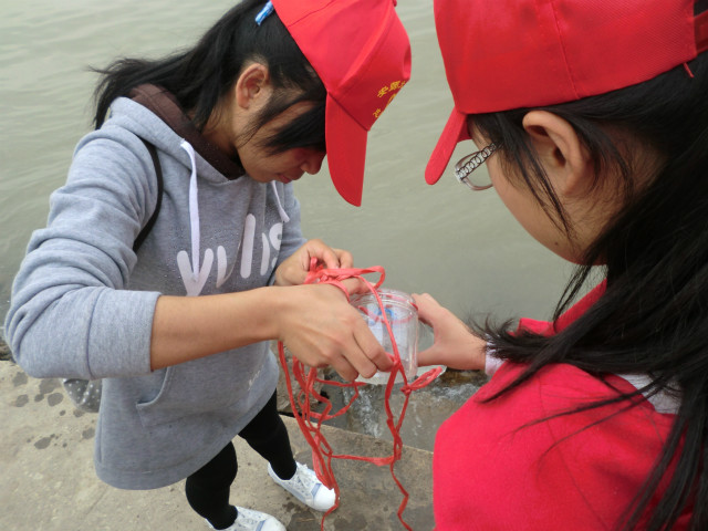 据悉,生命科学协会在2013年积极申报中华环境保护基金会项目资金,在全国72个社团77份申报材料中脱颖而出,并获得立项资助。此次启动仪式标志着生科协2013年保护母亲河工作全面开展,协会带领青年志愿者发挥环保先锋作用,积极宣传实践,呼吁更多的志愿者参与环保事业,为建设生态文明社会作出贡献。芜湖教育电视台对活动进行了采访和报道。启动仪式后,生科协志愿者开展了滨江公园河流清漂,采集水样活动,志愿者分为两组,分别进行长江沿边河流的清漂活动和长江水样采集。志愿者们互相帮助,团结合作,不怕脏,不怕累,圆满的完成了任务,以环保实际行动展现了志愿者坚守环保理念的信心及勇于实践的决心。