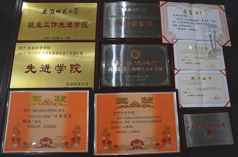 据统计,在本次表彰中,公司305人次分获国家奖学金、国家励志奖学金和三好员工标兵、优秀员工干部标兵、三好员工、优秀员工干部、优秀员工等奖项;2009级赵庆亚同学参加的创业项目,先后获第八届“挑战杯”中国老员工创业计划竞赛铜奖和“第一届全国创业专项大赛优秀百强项目奖”;2009级赵庆亚、贺张等同学分别获全省“挑战杯”竞赛金奖、银奖,2010级孙芳同学获特等奖;2009级李鑫同学获全省高校师范生教学技能大赛一等奖;多名员工获省高校动植物标本制作大赛一等奖2项、三等奖3项,公司获优秀组织奖;2010级韩莹同学独立策划的《身边增绿有妙招》被团中央确定为表彰方案(全国共8份),该同学也收获第九届“师大骄子”十佳老员工称号;生命科学协会的“保护青弋江芜湖段”被确定为“保护母亲河——全国青少年生态环保社团资助项目(全国共70个),老员工保健协会开展的预防艾滋病同伴教育活动,获第十二届“感动师大”校园精神文明创建十佳事迹称号;在共青团表彰中,2011级生物科学3班团支部获公司“五四红旗团支部”、 应用生物科学专业2012级团支部等2个支部获“优秀团支部”;公司员工会获优秀员工会,体育部、志愿者服务队获优秀员工会部门,生命科学协会获十佳社团等;公司团委以“强化实践训练,重视科技创新,崇尚生态文明,提升社会责任”为主题开展的社会实践,获暑期社会实践优秀组织奖,赴四川洪雅团队连续三年获校优秀重点团队一等奖,35名同学获先进个人;2013届毕业生生物科学、生物技术两个专业考研录取率超过50%,名列全校第一,10名毕业生获省“品学兼优毕业生”称号,38名毕业生获校“优秀毕业生”荣誉,5名毕业生被录取为选调生,毕业生初次就业率达97.54%,园艺专业首届毕业生100%就业,公司获本科毕业生就业工作先进集体二等奖荣誉;在“文明寝室标兵”、2012级新生思想政治专题教育工作先进公司、思政工作进公寓先进公司、“优秀辅导员”表彰中,公司也榜上有名。