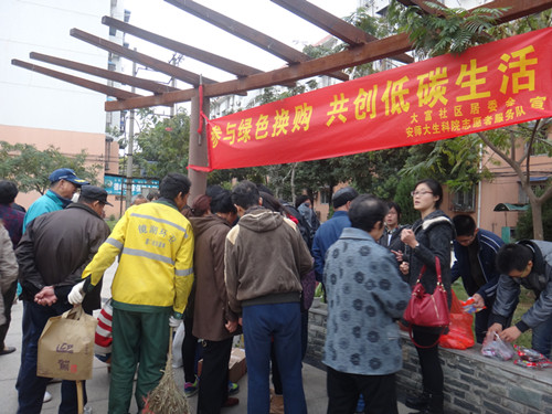 绿色换购,共建生态文明城市。11月13日下午,公司第二十期分党校入党积极分子培训班携手生科院志愿者服务队在大富社区邻里中心成功举办第一届“绿色银行”启动仪式暨第一期的营业活动。公司团委老师张磊、汀棠公共服务中心党工委副书记孟敏、社区领导、老员工志愿者和部分居民代表出席本次活动。