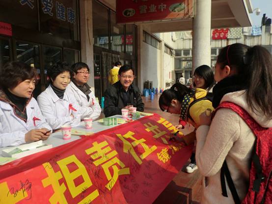 协会会员在赭山校区食堂门口通过展板展示世界艾滋病日的由来、目的、意义等,向过往员工散发宣传单讲解艾滋病防治知识、邀请他们在抗艾横幅上签名,表达共同预防艾滋信心和决心。部分员工也就自己关心的话题或疑惑主动咨询现场医生。食堂广场宣传活动从上午十点一直持续到下午一点,近千名青年员工从活动中学习了解到艾滋病预防知识,活动成效显著。