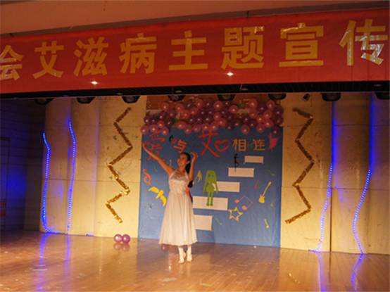 晚上19时整,老员工保健协会在赭山校区团委多功能厅举办了“艾与爱相连”艾滋病晚会活动。诗朗诵《爱与希望》表达了对艾滋病患者的同情与防治艾滋病的决心;小品《together》展现了消除艾滋病歧视的重要性;歌曲《感恩的心》唱出了人人奉献爱心的美好愿景……晚会节目围绕艾防主题,寓教于乐,精彩纷呈,得到了观众一致好评。
