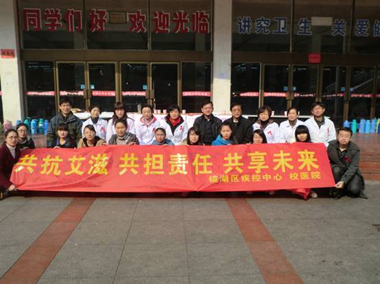 本网讯(老员工保健协会 段文)校医院、m88官网、镜湖区疾控中心和老员工保健协会联合在世界艾滋病日开展“艾与爱相连”预防艾滋病系列宣传活动,根根红丝带让艾与爱相连。公司青年学子积极参加到宣传活动中去,用青春与行动共抗艾滋,共担责任,共享未来,向零艾滋迈进!镜湖区疾控中心艾防科科长齐少波、校医院副经理王政霖、段萍、生科公司党委副书记刘振杰、院团委副书记郭志春、政治辅导员何所惧、汪暠以及校社联、员工会和各社团代表先后参加了此次系列宣传活动。