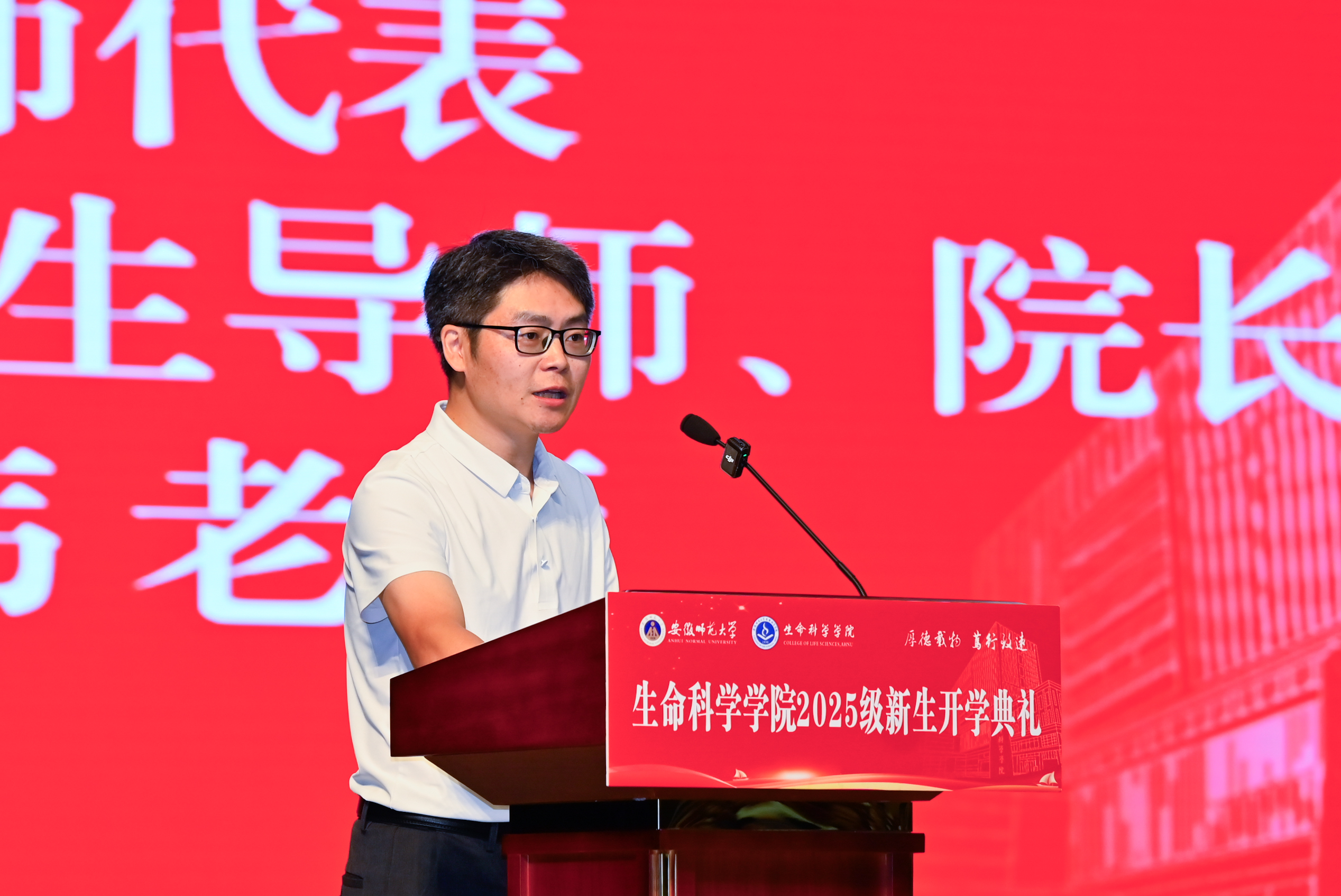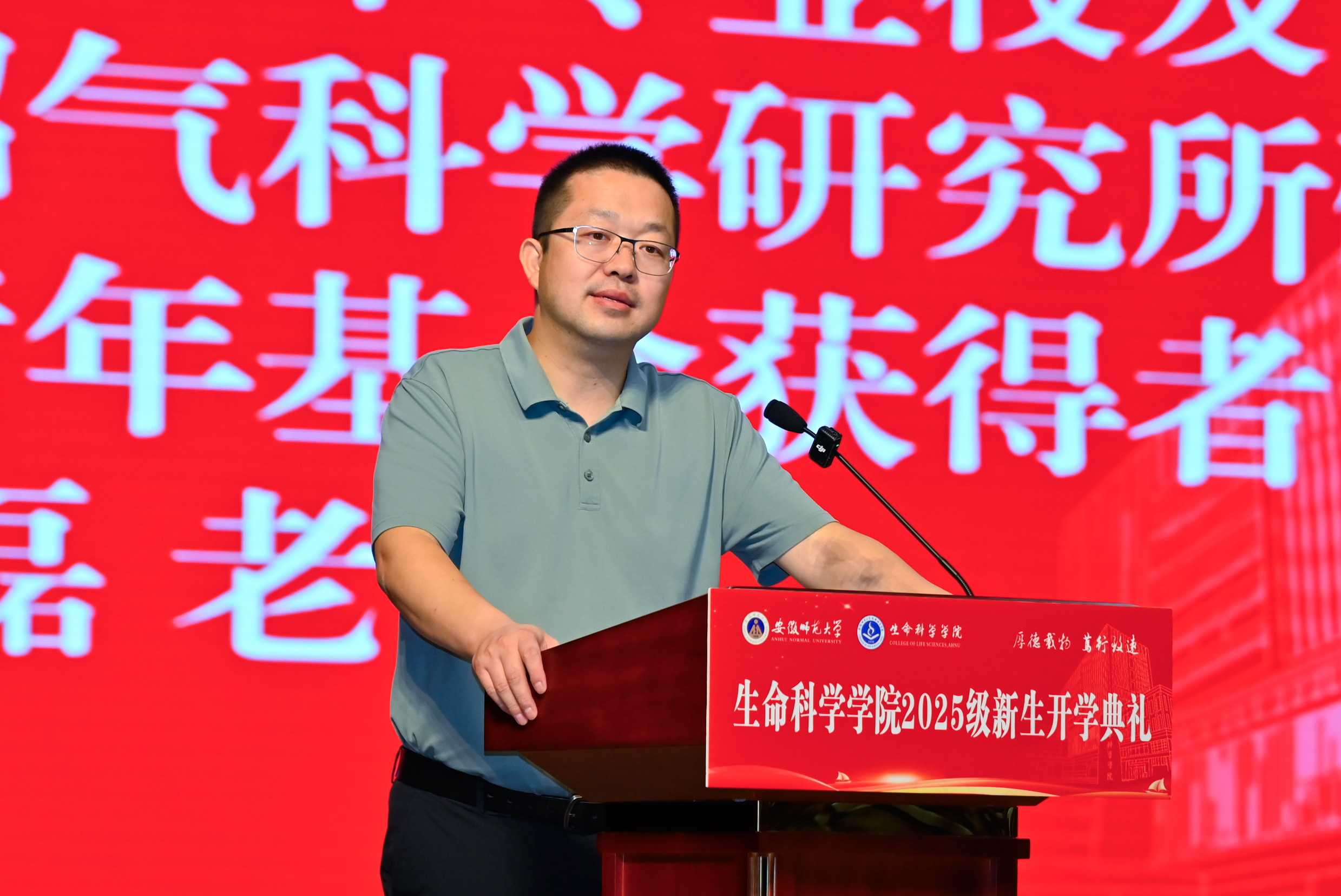 中国农业科公司成都沼气科学研究所研究员、国家杰出青年基金获得者承磊作为员工代表发言。他深情回忆了大学四年在母校求学成长点滴,坦言公司高标准、严要求的课程体系和恩师们言传身教的熏陶令其受益终身,向新生们讲述了在生命科学领域深耕的感悟,分享了科研路上的经验与收获,鼓励新生们珍惜大学时光,坚定专业信念,学会独立自主学习,在探索生命奥秘的道路上勇毅前行,努力作一个对国家、对社会都有用的栋梁之才。