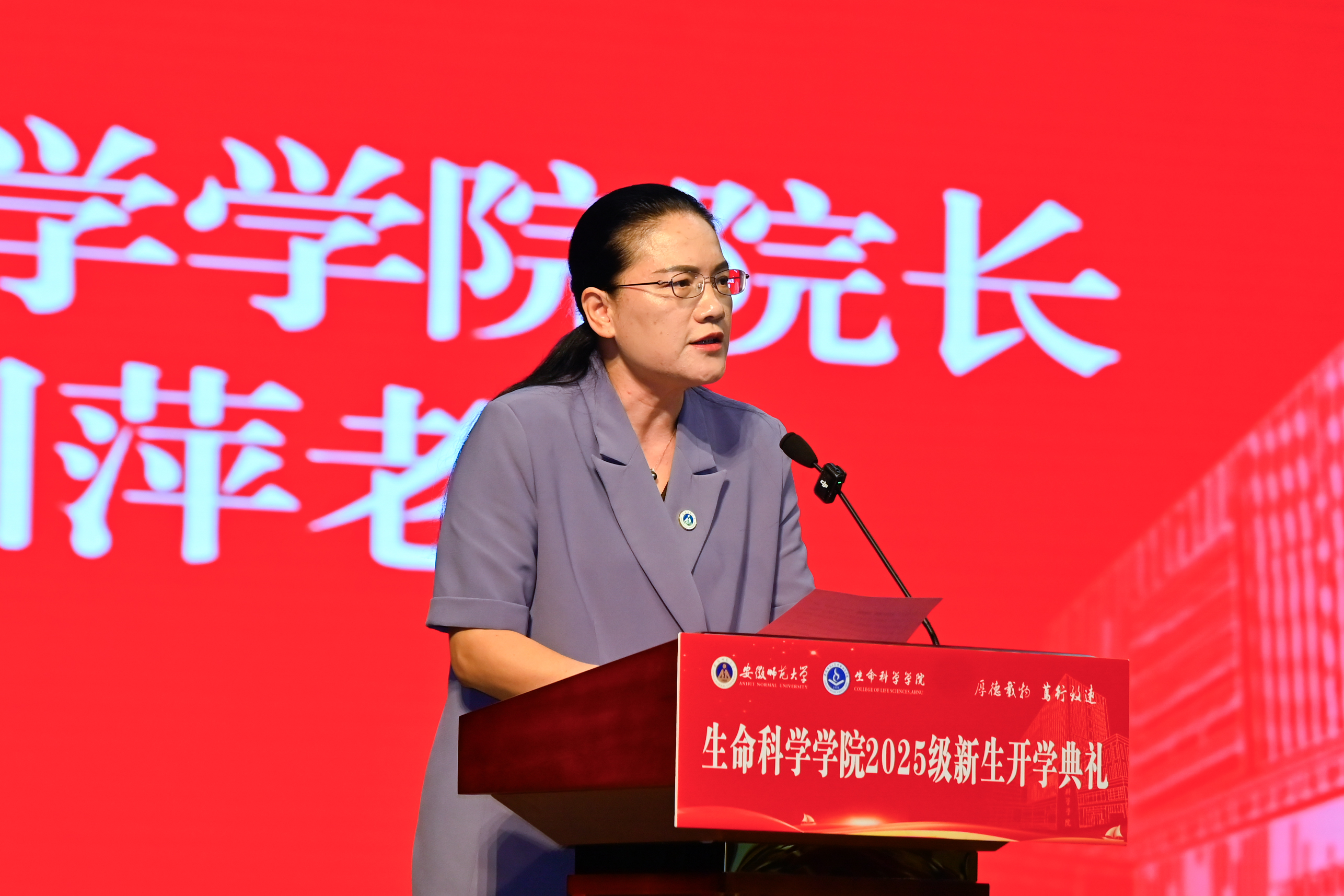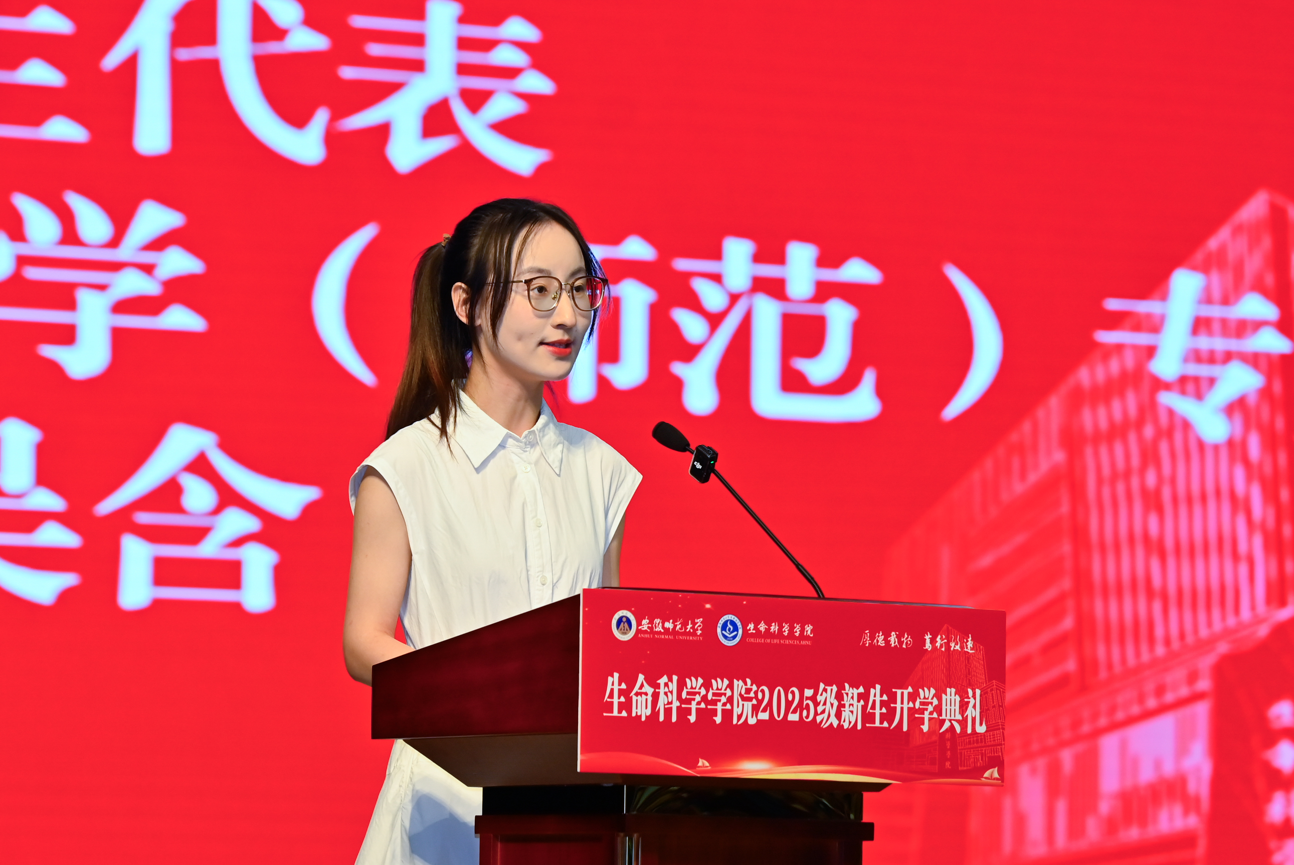 典礼最后,经理朱国萍教授代表公司全体师生员工向全体新同学表示欢迎和祝贺,为新生们介绍建院95年来的办学历史、学科专业建设与人才培养成果。围绕生命科学领域的发展前景、公司的育人理念,对新生们提出期望,寄语新生立鸿鹄志、担时代责,筑牢理想之基;潜心向学、勇于探索,练就过硬本领;修身立德、笃行致远,涵养君子之风;热爱生活、乐观积极,拥抱多彩青春。勉励全体新生秉承师大精神,珍惜韶华,砥砺前行,以青春之姿焕新生命科学活力,谱写推进“双一流”建设生科篇章。
