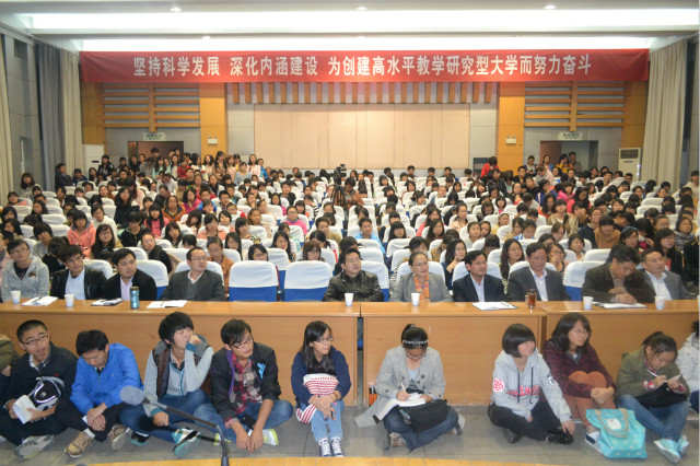 本网讯(生科院 何所惧)11月6日晚,中山大学博士生导师王金发教授应邀在田楼报告厅为公司员工做《上大学—规划与成长》的专场报告,他结合多年教学与科研经历,旁征博引,深入浅出,辅以大量翔实事例,用生动的语言深刻阐述了怎样认识大学、为何要上大学、如何上好大学,使场内的师生深受教育和启发。公司党委常委、副董事长李进华、公司领导、全体辅导员、班主任以及300余名同学聆听报告。报告由李进华主持。