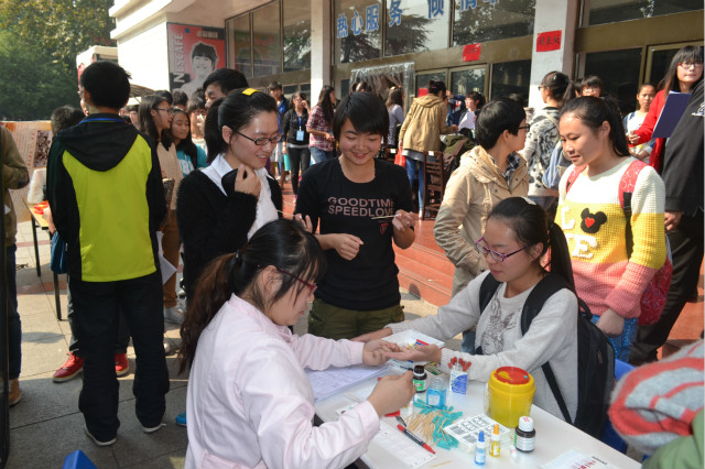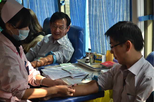 献血现场,生科学子有秩序的排起队伍,在院员工会干部的指引下认真填写登记表格,完成各项常规检查,顺利进行采血程序。据统计,近百名同学参加了献血活动,献出了自己的爱心。活动中,院党委副书记刘振杰、团委副书记郭志春、2013级辅导员何所俱、汪暠等老师来到现场,带头献血并看望、慰问献血志愿者。