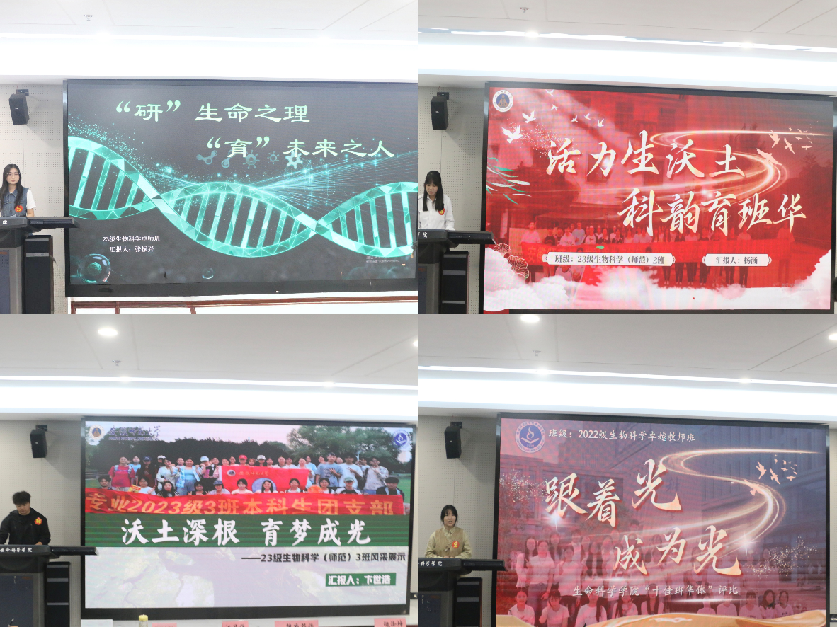 本次评选汇报会共有三、四年级共15个班级参评。参评班级依次上台汇报,从班级组织建设、思想建设、党团建设、管理服务、学风建设、校园文化活动、精神文明创建、体育活动等方面详细展示了班集体建设成果。各班在学业成绩、专业竞赛、科研实训、社会实践等方面成果亮点纷呈,充分彰显生科学子的青春活力与集体凝聚力,展现出公司班集体建设的多元探索与丰硕成果。公司评选领导组、班主任代表、辅导员代表及员工干部代表现场打分,评定2022级生物科学(师范)专业1班等10个班级为2024—2025学年院“十佳班集体”。