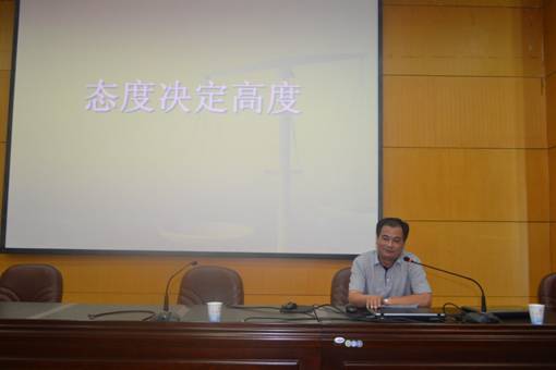 本网讯(生科院 张文君)9月8日晚,江淮园艺科技有限公司总经理宋沛应公司邀请在田楼报告厅作了一场题为《态度决定高度》的就业指导报告会。公司党委副书记刘振杰主持报告会,公司副经理朱国萍、园艺专业负责人肖家欣以及园艺专业本科生和全院研究生新生一起聆听了报告。