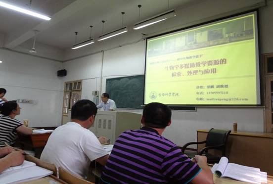 如今,网络资源和计算机应用技术已经广泛地深入到各行各业,作为一名新时代的初中生物学科教师,应该与时俱进,利用一切可以利用的教学资源,服务于自己的教学实践活动。晏鹏老师为我们精心准备的教学内容让我们受益匪浅,从生物多媒体教学资源的检索、处理与应用拓展讲到网络公共资源的获取与利用,学员教师们听得津津有味,认真地做着笔记,课程结束后都争先恐后地向老师请教。