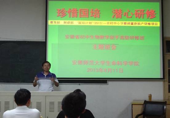 来自全省各地农村义务教育阶段的300多名骨干教师学员齐聚一堂,拉开了m88官方网站登录地址新一轮的“国培计划”培训活动的序幕。我班44位农村初中生物骨干教师冒着酷暑,暂别工作单位和家庭,从四面八方聚集到美丽的江城——芜湖,来到风景如画的m88官方网站登录地址赭山校区,进行为期三个月的置换脱产培训。