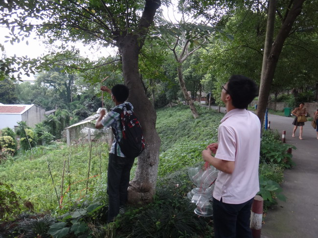 实践开展前期,胡好远教授为团队进行了指导。他详细介绍了寄生蜂的特征和习性,从如何收集寄生蜂等方面对团队进行了指导,为实践活动提供了理论依据。在制作好采集装置后,队员们带着野外采集昆虫必备物品,在神山公园、赭山公园等植物茂盛的地区进行了采集,并利用补虫网等工具捕捉昆虫,收获颇丰。