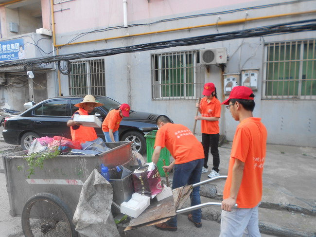 早上6点,伴随着清晨明媚柔和的阳光,安师大志愿者就与环卫工人一起为社区“美容”。他们打扫卫生,清理垃圾,剪除杂草等,有板有眼地当起了“环保小卫士”。志愿者们一丝不苟的行为得到了环卫工人的高度好评。志愿者们也因此深刻理解了:看似不起眼的环保,却是社区工作不可或缺的重要部分,有了“社区美容师”,才会有美丽的绿色社区。