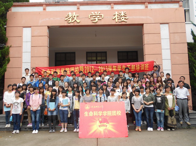 为加强员工干部队伍建设,提高员工干部的理论水平和工作能力,推进团学组织健康持续发展,2012年12月1日,生科院团委以“梦想诠释青春,服务点燃价值”为主题,组织了团学干部系列培训,以课堂专题教授为主、个人自学为辅,以观看录像、座谈交流、实践锻炼、志愿服务等为补充。培训班先后邀请多位党政干部担任主讲嘉宾,开展了八次理论课和多次实践活动,培训内容涉及团干素质培养、可迁移技能学习、安全知识普及、心理健康辅导等四个专题,对全方位促进员工干部素养培养、深层次提升团学工作产生了积极的作用。
