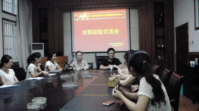 本报讯(生科院 赵清清)6月21号晚,生科院2013届毕业研究生文明离校系列活动之“求职经验交流会”在公司一楼报告厅举行。