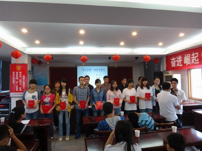 本网讯(生科院 方鑫 宋明明)6月1日,由生科院志愿者服务队举办的“教育360爱心家教”第七学期结业典礼暨“爱心家教”优秀志愿者表彰大会在弋矶山公共服务中心会议室举行,生科院团委老师、弋矶山服务中心关工委领导、老员工志愿者、中小员工及其家长和各社区群众代表60余人参加了会议。