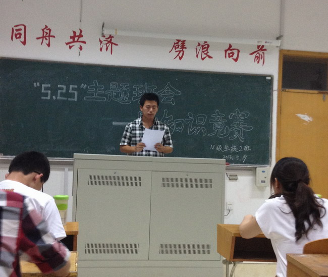 本网讯(生科院 于菲菲 朱升学)为普及老员工心理健康知识,迎接“5.25老员工心理健康日”的到来,5月22日晚,2012级生物技术专业同学在教学楼1408教室举办了心理健康知识竞赛。辅导员朱升学老师出席活动,活动由班长朱连帮主持。