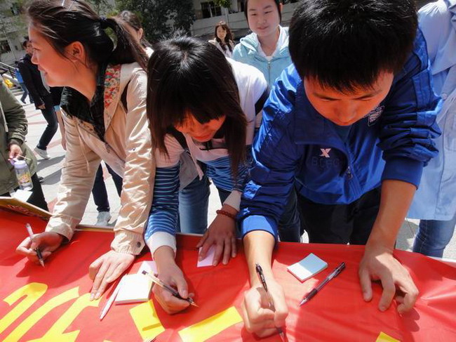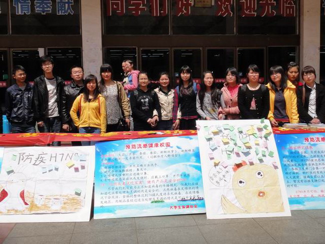 协会成员认真搜集春季流感、水痘等疾病预防知识,并制作了精美的展板进行宣传,针对现今部分地区出现的H7N9疫情,会员们结合自身专业特点,科学普及疾病发生原因及预防手段,有效消除了疾病恐慌情绪。食堂前同学们参与热情高昂,与协会会员充分交流互动,并纷纷在活动横幅上签名表达健康生活的信心和决心,同学们还在便利贴上写下自己对家人的健康祝福贴在展板上,表达同流感病毒做斗争的信念和勇气。