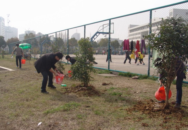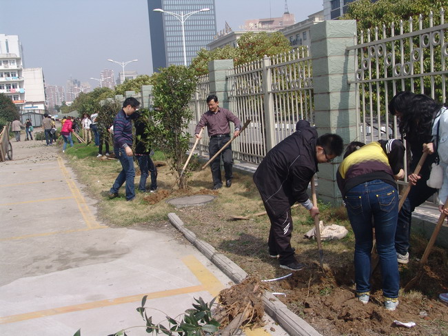 植树现场,在后勤管理处的大力支持和园艺师的亲自指导下,老员工志愿者热情高涨,同学们挥锹挖土、培土浇水、栽植树苗。经过三个多小时的辛勤劳动,志愿者们共种植桂花树苗50多棵。随后,志愿者们对所种植的树苗进行了认领,制定了定期养护计划,确保树苗高成活率。公司党委副书记刘振杰、团委副书记郭志春、辅导员黄振新等与志愿者一起参加了植树活动。