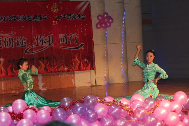 美轮美奂的民族舞《月光下的凤尾竹》拉开了晚会的序幕;歌曲《我们的爱》、《白桦林》给大家带来了听觉盛宴;诙谐幽默的小品《职在囧途》,逗得观众频频大笑;游戏“70 80 90”听歌猜歌唱歌,熟悉的旋律将大家带回往昔的记忆;诗朗诵《雨巷》尽显女儿情怀;魔术表演展示了梦幻世界的奇异……员工们的演出精彩无限,老师献艺则让晚会饱含浓浓的师生温情。袁兴龙书记在晚会上向全体研究生发表了深情寄语和美好新年祝福,严云志和储玲老师带着他们可爱的小女儿,带来了《让爱住我家》,增添了晚会的温馨,掀起了整场晚会的高潮。
