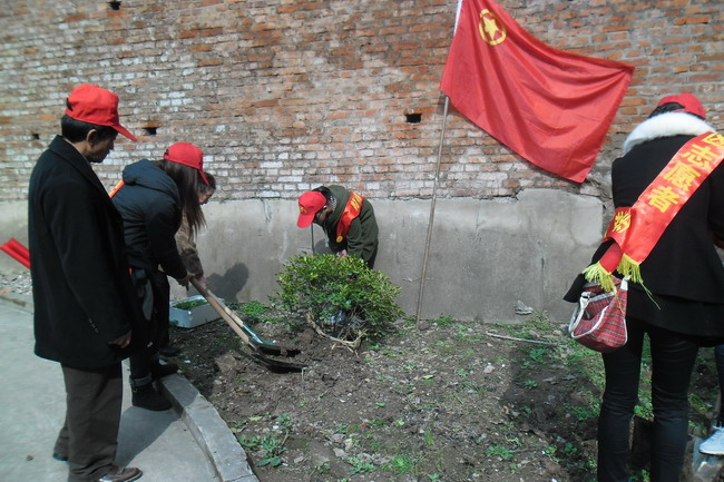 志愿者还在青山二期小区道路两旁种植树木,用棵棵绿苗点缀小区环境。同学们挥舞锹铲,挖洞抬水,分工合作,种下的新树苗代表着志愿者们为社区群众服务、践行雷锋精神的信心与决心,更是青年志愿者对社会责任的一份承担。