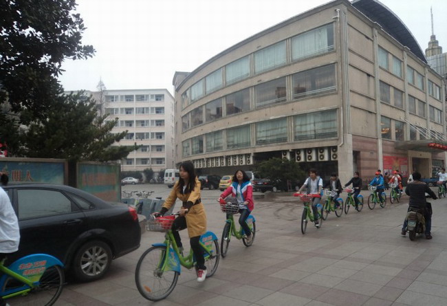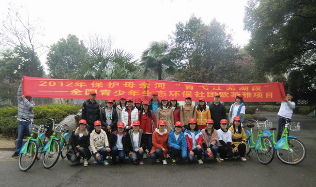 本网讯(生科院 柯芮 郭志春)为倡导绿色环保低碳出行,创建美丽芜湖,3月17日上午,生命科学协会同学骑乘公共自行车前往赭山公园,践行“生态文明,绿色出行”理念,并向周围群众宣传协会承担的“2012保护母亲河——全国青少年生态环保社团小额资助欧莱雅项目组”之“保护青弋江芜湖段”项目。