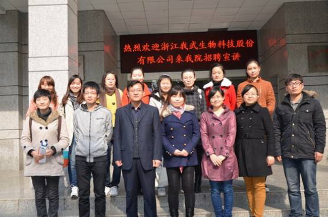 为进一步拓宽毕业生就业渠道,提高毕业生就业质量,生科院采取有效措施,及早谋划启动2013届毕业生就业工作。11月17上午,应生科院邀请,浙江我武生物科技股份有限公司到公司举行专场人才招聘会,公司党委副书记刘振杰、2009级辅导员贾瑞和部分2013届本科生、研究生参加了招聘会。招聘会上,我武公司人事部招聘专员马晓烨、王萍就公司的发展历程、企业文化、用人模式以及经营理念等相关内容进行了宣讲,对毕业生普遍关心的公司人才培养机制、管理制度以及福利待遇等方面内容进行现场解答。通过简历筛选、笔试和面试,10名毕业生与我武公司达成了初步就业意向。
