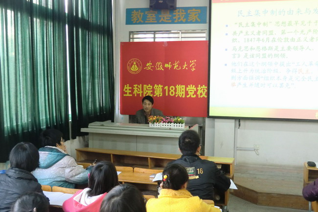 11月24日上午,生科院分党校第18期入党积极分子培训班在物理楼8103教室正常上课,公司党校常务副董事长、组织部副部长朱为民老师应邀为学员做了《党的组织制度和纪律》的专题报告。