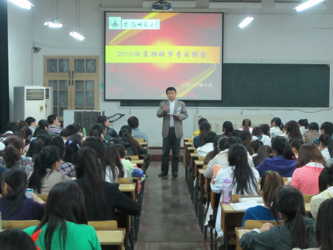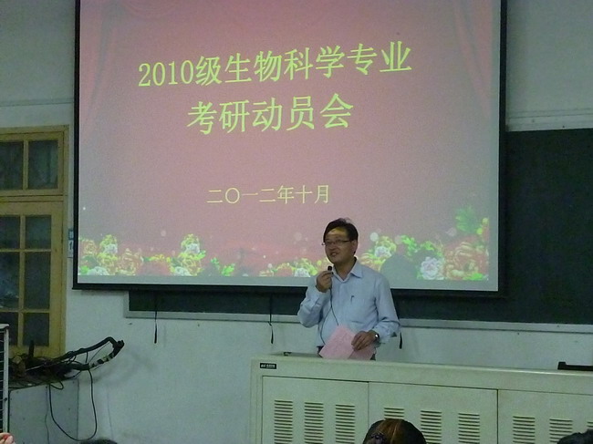 10月28日晚,生科院在教学楼1401教室召开了以“放飞梦想,扬帆起航”为主题的考研动员大会,公司党委副书记刘振杰、生化微生物教研室李恩老师出席并作动员和培训,2010级辅导员夏齐平主持会议,10级生物科学专业全体同学参加了动员会。