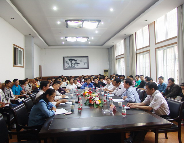 10月10日,应生科院邀请,十一届全国人大代表、安徽省农科院经理杨剑波研究员、省农科院园艺所所长张其安研究员、科研处长肖扬书副研究员来公司进行学术交流。公司党委常委、副董事长李进华出席并讲话,生科院领导、公司部分教师和相关专业硕士生、本科生100余人参加座谈会,座谈会由经理席贻龙主持。