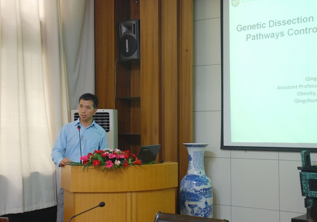 童青春博士长期从事摄食和能量消耗平衡过程中神经通路的调节研究,从而为与摄食相关的代谢性疾病(如肥胖)的治疗提供新途径。童青春博士在报告中介绍了瘦素Leptin的表达与肥胖的关系、肥胖与糖尿病的关系,以及与之相关的由GABA和Glutamate等一些神经递质介导的神经通路的调控作用。童青春博士在下丘脑GABA神经调节的作用机理等研究方面取得了丰硕的成果,在《Cell》、《Neuron》、《Nature Neuroscience》、《NeuroReport》、《Cell Metabolism》等神经生物学和生理医学顶级杂志上发表论文近20篇。