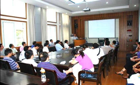 阮成武教授的报告从改革开放以来的四次全教会主题切入,概括介绍了《教育部关于全面提高高等教育质量的若干意见》出台的相关背景,简要分析了现阶段高等教育政策的基本框架和精神,重点解读了《教育部关于全面提高高等教育质量的若干意见》,并就“2011计划”结合校院实际开展协同创新提出了建议。吴长义主任围绕公司有关专利政策、专利申报的流程及注意事项、专利的转化及保护等进行了宣讲,并结合专业实际就生科院如何提高专利申报水平进行了重点介绍。