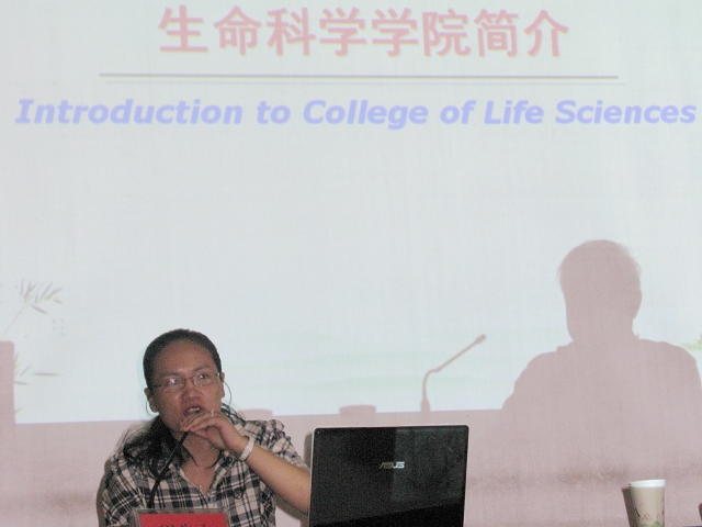 在安庆师范公司,朱国萍教授和华田苗教授分别做了题为“Generality of the Mechanism for Functional Evolution of Isocitrate Dehydrogenase”、“老年性视觉功能衰退及知觉学习的神经机制研究”的学术报告。郝家胜教授、蔡亚非教授、邵剑文教授分别就“蝶类的分子系统与进化”、“脊髓损伤与修复的分子机制”、和“安徽羽叶报春的系统与进化研究”等相关领域的研究进展作了报告。在阜阳师范公司,朱国萍教授作了“异柠檬酸脱氢酶功能进化机制的普遍性研究”的报告、胡好远教授作了“运用寄生蜂等天敌对害虫进行生物防治研究”的报告、严云志教授作了“山溪鱼类的分布格局研究” 的报告,陈明林副教授作了“植物繁殖生物学” 的报告、项贤领副教授作了“萼花臂轮虫种复合体遗传分化的时空格局”的报告。报告会内容翔实、深入浅出,拓宽了参会老师、同学的知识视野和研究思路。参加此次招生宣传的还有博士生导师王友保教授、硕士生导师柯丽霞教授。