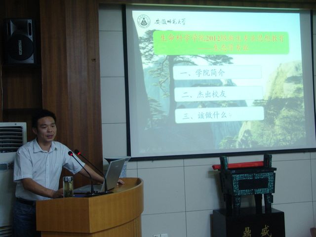 生物科学专业负责人陈明林、园艺专业负责人肖家欣、应用生物学专业负责人胡好远、生态学专业负责人王友保、生物技术专业负责人刘爱民等采用PPT分别对本专业的基本概况、团队力量、发展前景、就业方向和学习要求等作了全面介绍,从“培养目标”、“培养方式”、“学分要求”、“课程设置”、“专业特色”等方面对专业人才培养方案进行了详细解读,使新生对所学专业有了初步认识和了解,明确了大学四年所要学习的各类课程。各专业班主任汪倩倩、钱叶雄、陈夫贵、夏齐平、项贤领、汪建中、王鹏等老师从学习和生活两个方面与新生进行了交流,表示将竭尽全力为新生提供学业指导和成长引导。随后,各专业老生代表分别与新生分享了自己专业学习、服务同学、快乐生活的经验,交流了不足之处和努力方向。