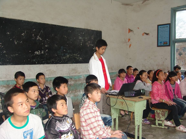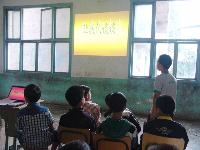 山区的留守儿童们因双亲不在身边,多数孩子都存在自卑的心理。为了让同学们更加自信,志愿者们别出心裁,以一则视频《我能型》引入心理疏导的正题。为尽量避免敏感话题,志愿者们以“让我们谈谈”的方式与孩子们进行沟通。同学们敞开心扉,述说着各自的故事和感受,其他同学都听得聚精会神,现场一片寂静,很多同学流下了感动的泪水。心理辅导老师梁子峰告诉同学们:“每个人都是蝴蝶的前世,都会有破茧成蝶的美丽。无论你们在别人眼中如何,但是你们要坚信,至少,你们在场的每个人在我眼里都是天使,因为你们都有一颗纯朴、善良的心。”一向自卑的留守儿童王渊顿时敞开心扉,她激动地对梁子峰说:“以前我从不知道除了奶奶,还会得到第二个人的肯定,我也从来不知道原来我也可以成为老师心中的白天鹅。”