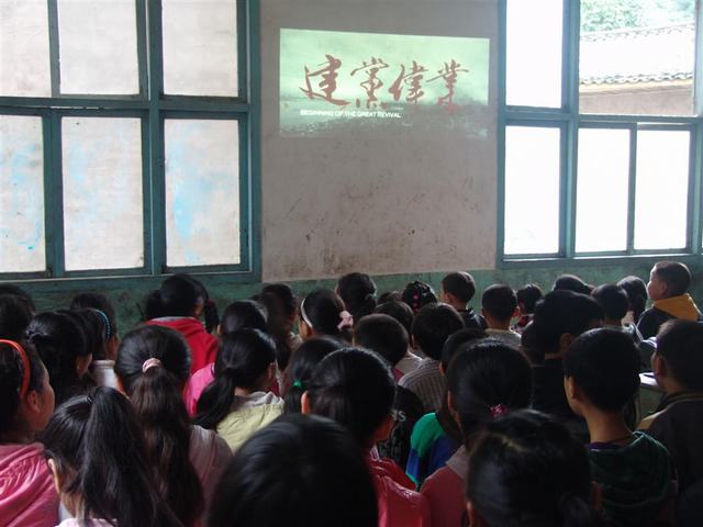 7月20日,志愿者们组织近110名员工观看了红色电影《建党伟业》,虽然没有电影院的先进设备,但投影在简陋教室墙壁上的画面依旧深深吸引着同学们的目光,他们聚精会神的观看着、思考着,体会中国共产党一路走来的艰辛与坎坷。