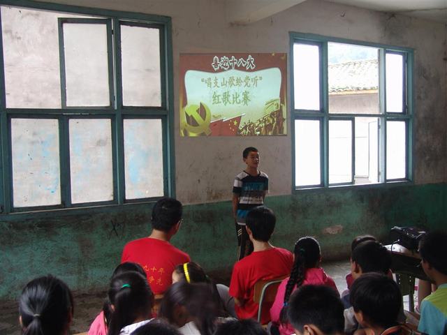 7月22日,嘹亮的红歌声响彻山区小学的校园,一场别开生面的“唱支山歌给党听”红歌比赛正在举行。同学们踊跃报名、积极参与,一支支红色经典歌曲被同学们演绎地婉转动人。最后周宇鹏同学以一曲《我爱我的祖国》脱颖而出,荣获此次红歌比赛的特等奖。(生科院 毛琳)