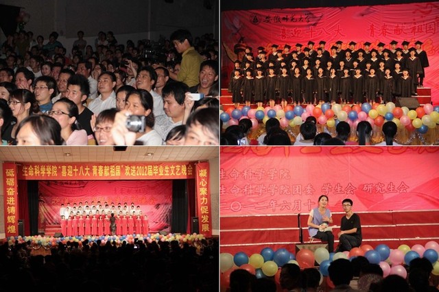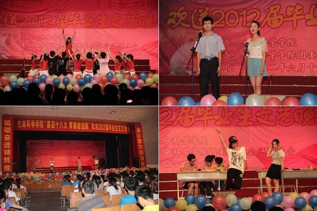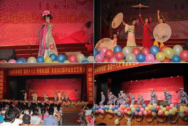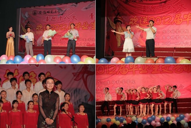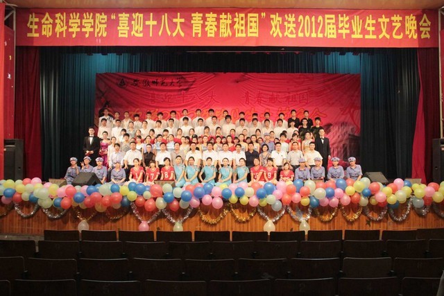 龙年芒种收获季,又到学子离校时。6月10日晚七点,m88官网“喜迎十八大,青春献祖国”欢送2012届毕业生文艺晚会在赭山校区大礼堂盛装上演。公司党委常委、副董事长李进华,公司党校常务副董事长、组织部副部长朱为民,教务处副处长、招办副主任顾凌,学工部副部长、员工处副处长汪俊武,研工部副部长、研究生公司副经理汪健萍,资产管理处副处长周伍,校团委常务副书记邵登辉等出席晚会,生科院全体师生千余人欢聚一堂,共同观看了晚会。