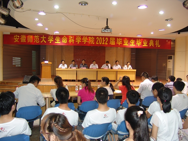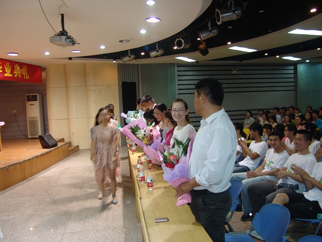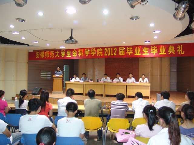 毕业典礼在雄壮的国歌声中拉开序幕。首先,经理席贻龙代表公司致辞。他深情回顾了2012届毕业生在生科院学习、生活的点点滴滴;向即将毕业的433名本科生、100名硕士生和8名博士生表示热烈的祝贺;激励同学们要勇敢地面对生活,迎接挑战,走向成功;希望大家谨记校训,常筑“厚德”之基,常存“重教”之心,常固“博学”之本,常为“笃行”之事。接着,教师代表王友保老师为毕业同学临行寄语,嘱托同学们要坚持学习,不断进取,尽快适应社会,在新的学习和工作中再创辉煌。非毕业班员工代表张烨同学致欢送词,毕业本科生代表夏凯和研究生代表王鹏分别致答谢词。随后,毕业生代表向到会的领导、老师献花,一束束美丽的鲜花传达了深深的感激之情。