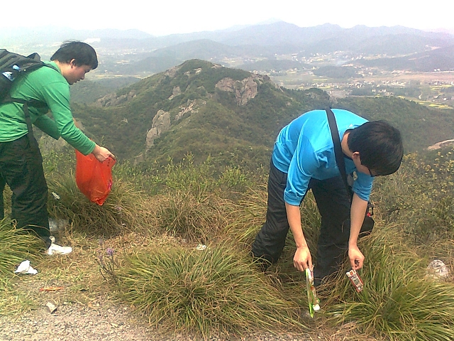 在马仁山景区,生科学子一起进行 “地球—我的家”环保实践活动,向游客进一步宣传环保理念,倡导践行“多献出一份力,还山峰一片绿”。同学们还将山间看到的垃圾小心地捡走,让山林间多一分洁净的绿色。