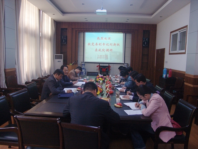 4月11日上午,公司党委副书记刘新跃在校办公室副主任张伟、宣传部副部长詹剑锋的陪同下来公司调研,公司党政领导班子参加调研汇报会,公司党委书记袁兴龙主持调研会。