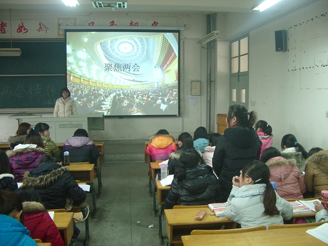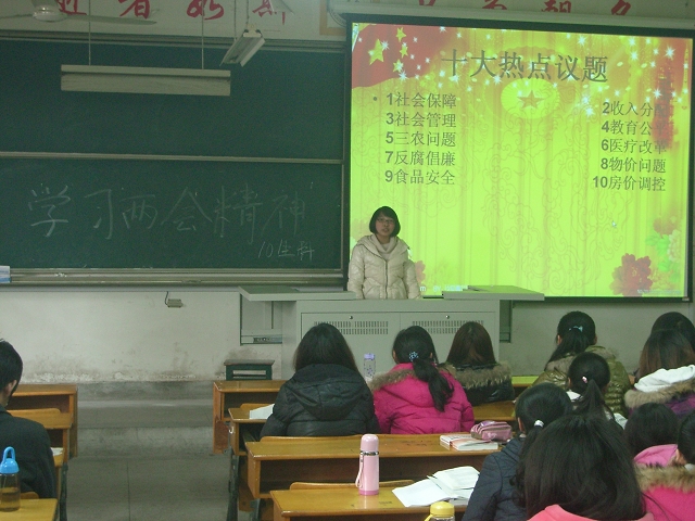 同学们在共同学习了温家宝总理的《 政府工作报告后,围绕诸如国家经济发展、社会道德建设、食品安全监管、教育公平、老员工就业、PM2.5等民生问题、热点议题展开热烈讨论,大家认为政府工作报告客观、全面、深刻地总结了2011年政府工作,对2012年工作进行全方位部署,内容涉及经济平稳较快发展、科教兴国人才兴国战略、切实保障民生、促进文化大发展大繁荣等9个方面,进一步彰显了党和政府加快中国特色社会主义建设的决心和为人民谋福祉的人本情怀,令人倍感振奋。李文婷老师在发言时鼓舞同学们努力学习专业知识,践行雷锋精神,为祖国做出贡献。