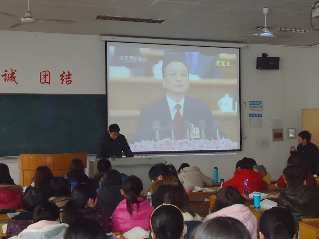 聚焦时事热点,心系国家发展。3月6日下午,2010级生物科学专业全体同学在田楼教室学习了温家宝总理《政府工作报告》,《毛泽东思想和中国特色社会主义概论》授课教师李文婷参加学习并作指导性发言。