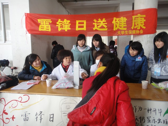 3月3日,为践行雷锋精神,校医院和生科院老员工保健协会在赭山校区举行“雷锋日送健康”活动,受到广大同学的欢迎和好评。