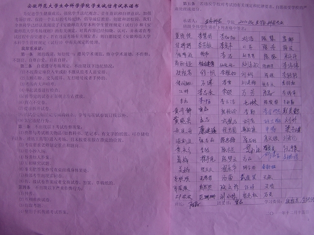 为增强员工校园安全意识,普及安全防范知识;加强诚信教育,弘扬勤奋刻苦、自立自强的优良学风。12月15号上午,m88官网10级生物科学专业辅导员李古州在教学楼1409、1507教室召开了安全与诚信教育主题班会。