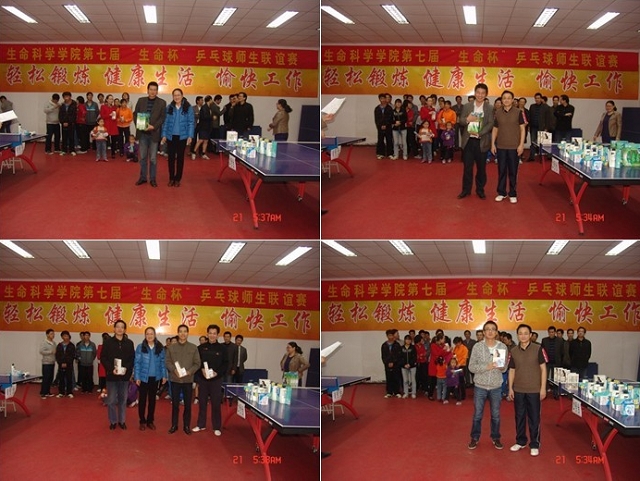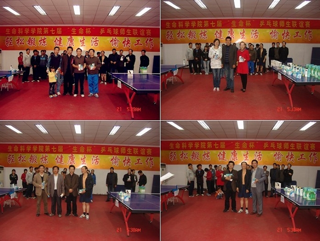 此次比赛分女子个人赛和男子团体赛,女子个人赛由本科生、研究生和教师共12名选手参加;男子团体分成甲、乙两组,共有12支球队参加,博士生代表队首次参加比赛。本次比赛采用国家体育总局审定的最新《乒乓球竞赛规则》,经过100多场精彩、激烈的角逐,最终,储玲老师、孙佳艺同学分获女子单打冠军;男子甲组、乙组团体赛的冠军分别由遗传学队、动物学队获得。