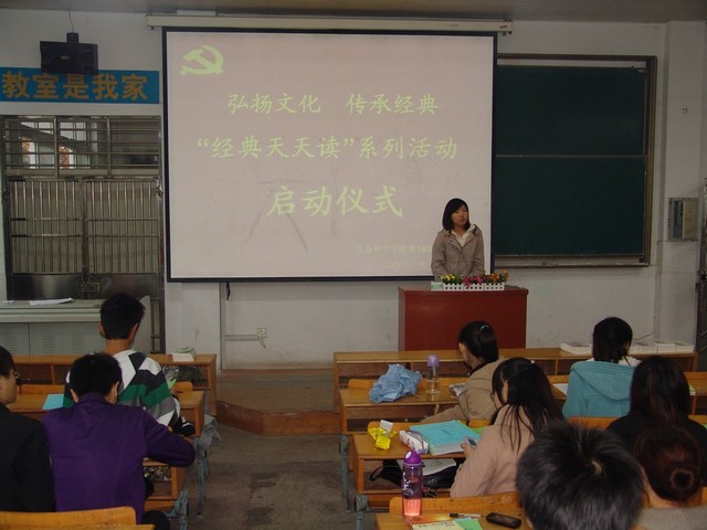 为庆祝建党九十周年,深入贯彻十七届六中全会精神,进一步传承和弘扬传统文化,11月19日,m88官网第16期入党积极分子培训班在物理楼3302教室举行“经典天天读”系列活动启动仪式。培训班班主任李古州及全体学员参加了仪式。仪式由班长刘君忆主持。